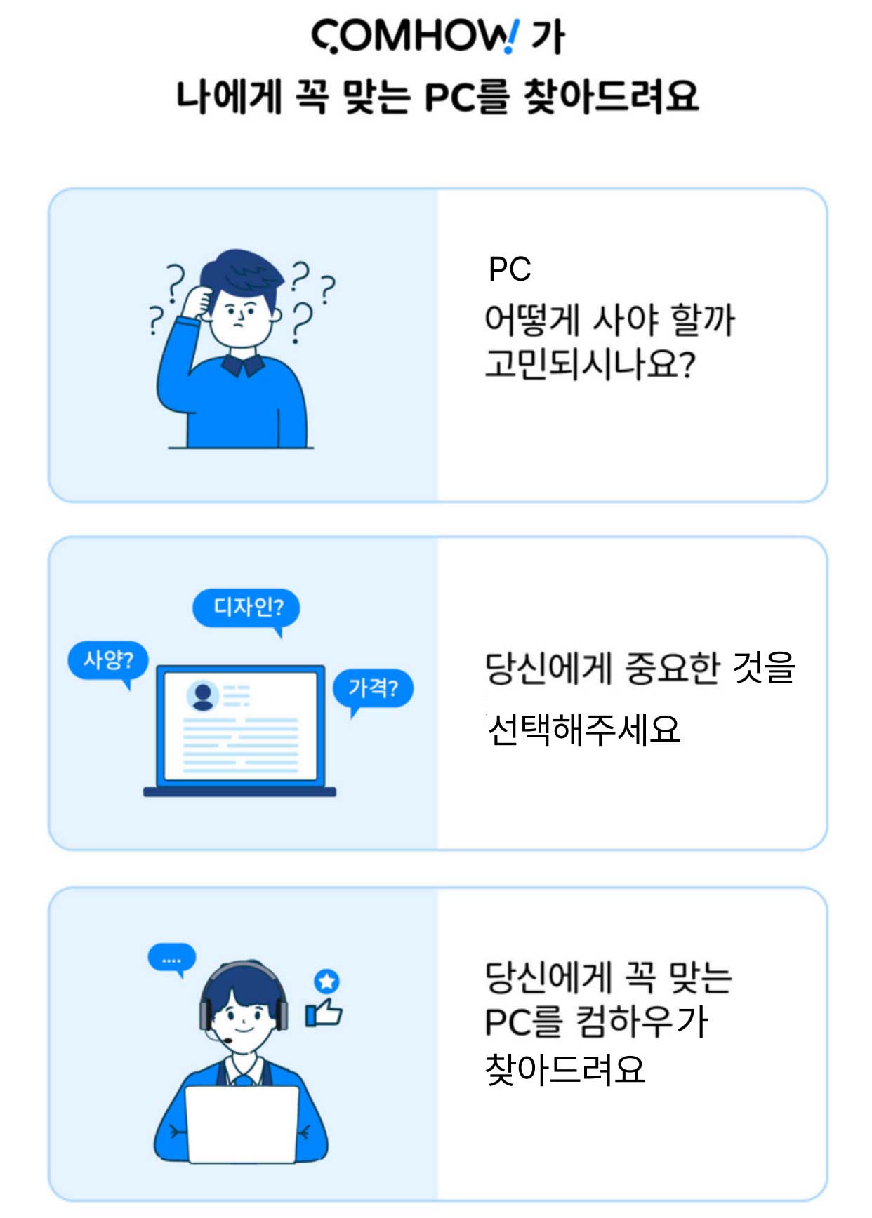 수년간 관련 업계에서 전문성을 쌓은 MD가 당신에게 딱 맞는 컴퓨터를 찾아드리는 맞춤형 컴퓨터 큐레이션 서비스입니다.